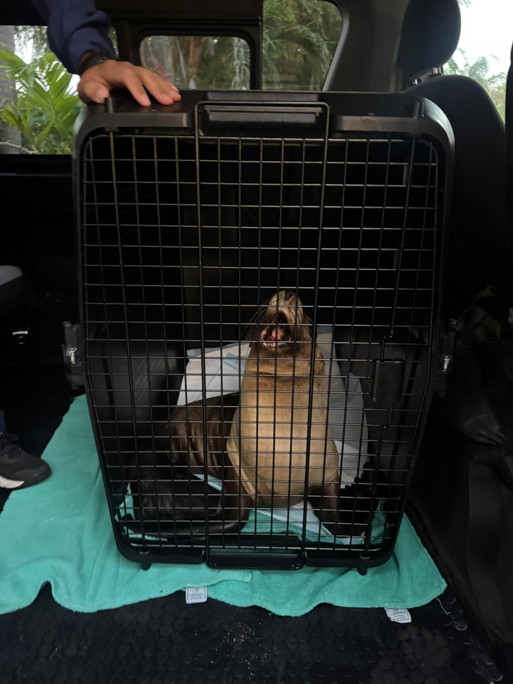 Con el respaldo cercano del alcalde Héctor Santana, «Marquitos» , el lobo marino rescatado en Bahía de Banderas, es trasladado a Guadalajara para una delicada cirugía de mandíbula