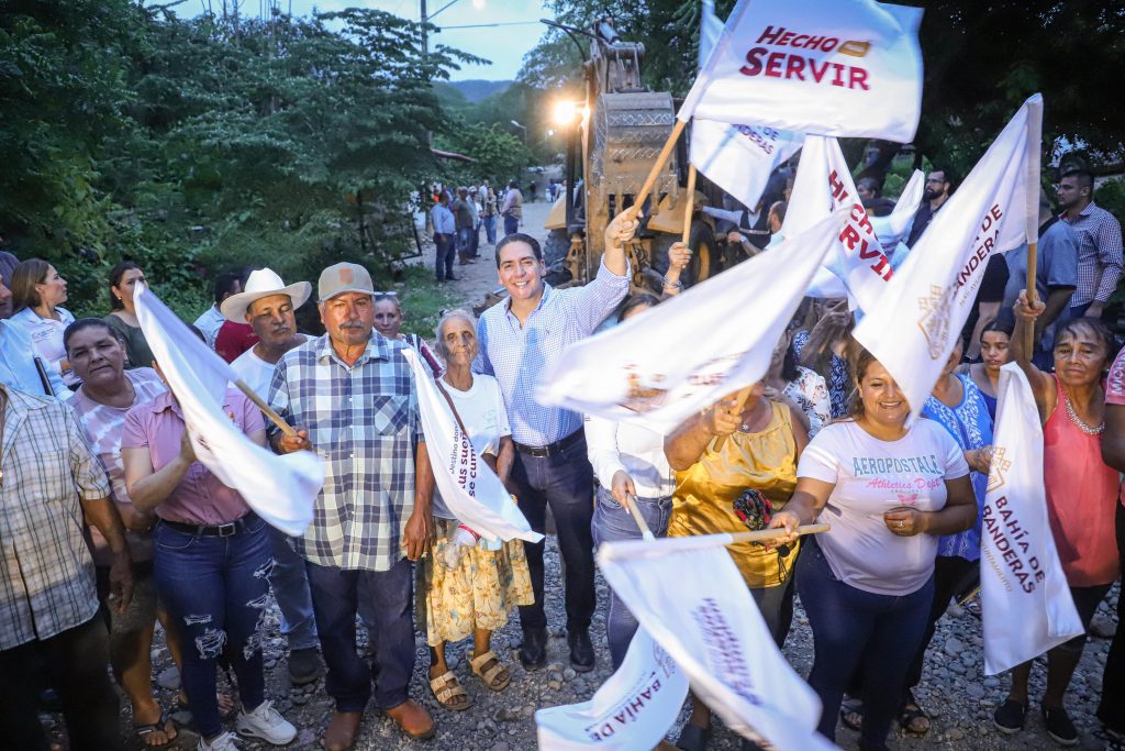 Con el corazón puesto en la sierra y el compromiso firme de mejorar la calidad de vida de todos los bahíabanderenses, el presidente municipal Héctor Santana García dio arranque a la obra de empedrado ahogado con huellas de rodamiento en concreto en la avenida principal de ingreso a la comunidad de Aguamilpa, una vialidad largamente esperada por las y los habitantes de esta zona.