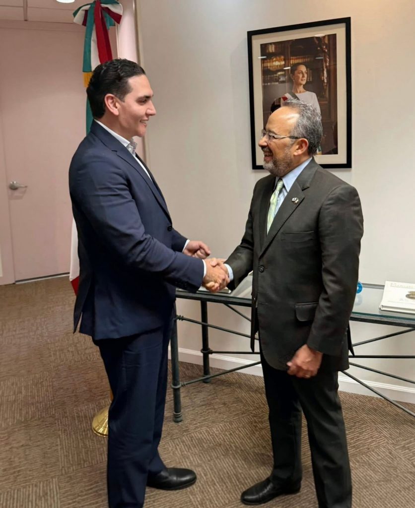 Como parte de su gira de trabajo en la Unión Americana, el presidente municipal Héctor Santana sostuvo un encuentro con el Embajador Carlos González Gutiérrez, Cónsul General de México en Los Ángeles, con el objetivo de fortalecer los lazos institucionales y generar nuevas oportunidades para el municipio.