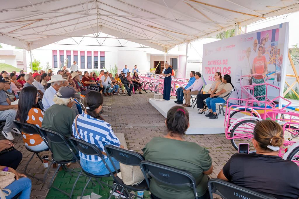 Entre sonrisas, abrazos y palabras de agradecimiento, decenas de personas adultas mayores, madres y padres de familia recibieron un triciclo de carga como nueva herramienta para fortalecer su economía. La presidenta del Sistema DIF Nayarit, doctora Beatriz Estrada Martínez, encabezó esta entrega gratuita de 100 unidades en beneficio de familias de Tepic, Tuxpan, Santiago Ixcuintla, Xalisco y Jala.
