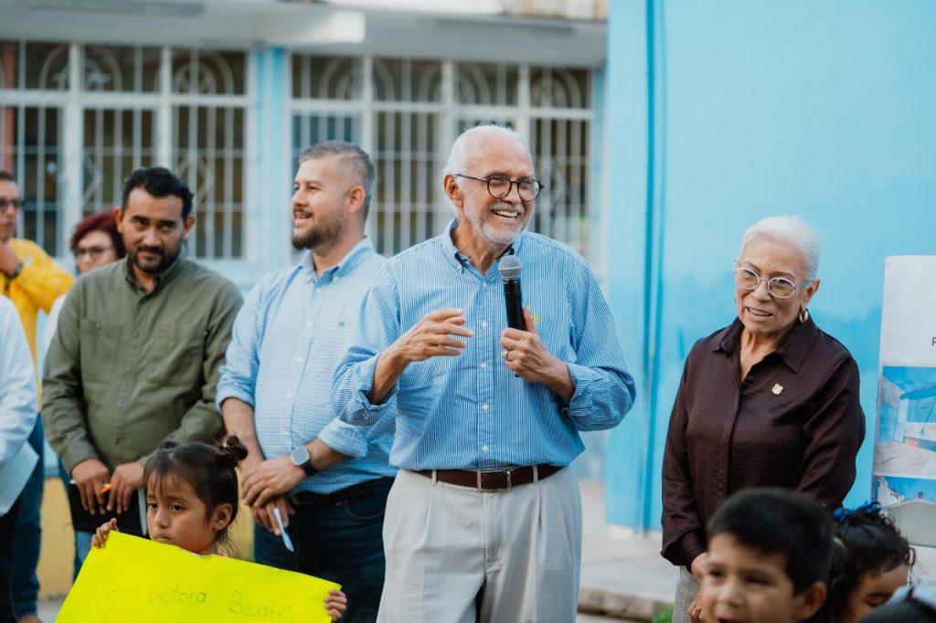 Asimismo, señaló que, a solicitud de su esposa, la doctora Beatriz Estrada Martínez, asumió el compromiso de rehabilitar la barda perimetral, instalar juegos infantiles inclusivos, realizar poda preventiva y apoyar con pintura para que madres y padres de familia participen en el mejoramiento del plantel.