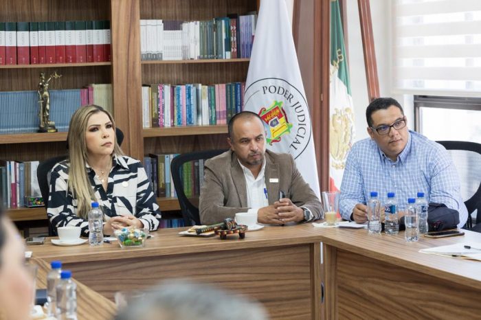 El Pleno del Tribunal Superior de Justicia e integrantes del Consejo de la Judicatura que preside la magistrada Rocío Esther González García sostuvieron una reunión informativa con los titulares de la Auditoría Superior del Estado de Nayarit (ASEN) y la Secretaría Ejecutiva del Sistema Local Anticorrupción (Seslan), Salvador Cabrera Cornejo y José Ramón Ramírez González, respectivamente, sobre la incorporación del Poder Judicial al Sistema 1 de la plataforma digital local, relativo a las declaraciones de evolución patrimonial, patrimonial o de intereses que por ley y según sea el caso, las y los servidores públicos deben presentar durante mayo.