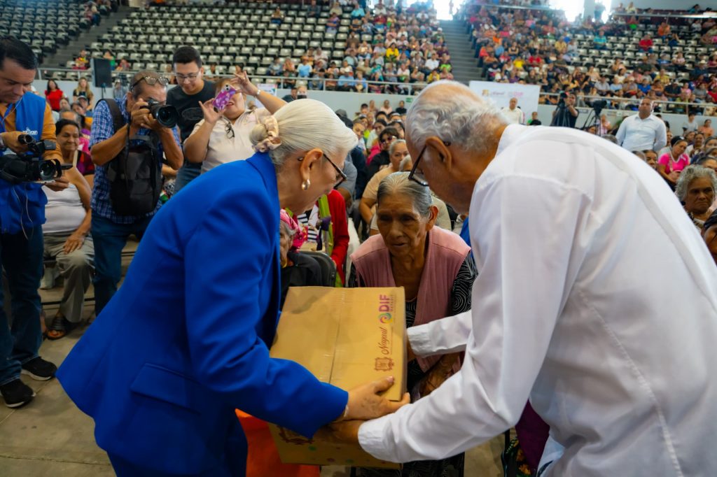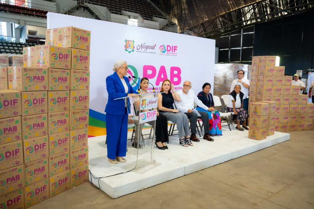 La entrega se está llevando a cabo en el Auditorio Amado Nervo en Tepic, donde la titular de la asistencia social en la entidad informó que en total serán 46 mil familias beneficiadas en todo el estado, con 230 mil dotaciones alimentarias integradas por 16 productos de alto valor nutricional, diseñados para fortalecer tanto la salud como la economía familiar.