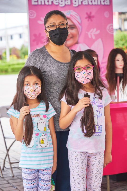 La señora Cristina Roque Gil, y sus dos hijas Victoria Lizeth y Thania Elizabeth López Roque, de 10 y 7 años de edad, acudieron al módulo de Casa de la Mujer que se instala cada último viernes del mes en la plaza Benito Juárez de esta ciudad capital. Ellas conocen la importancia de esta campaña y con la donación de su cabello, logran que mujeres y niñas que reciben tratamiento contra el cáncer, recuperen su autoestima al ser dueñas de una peluca.