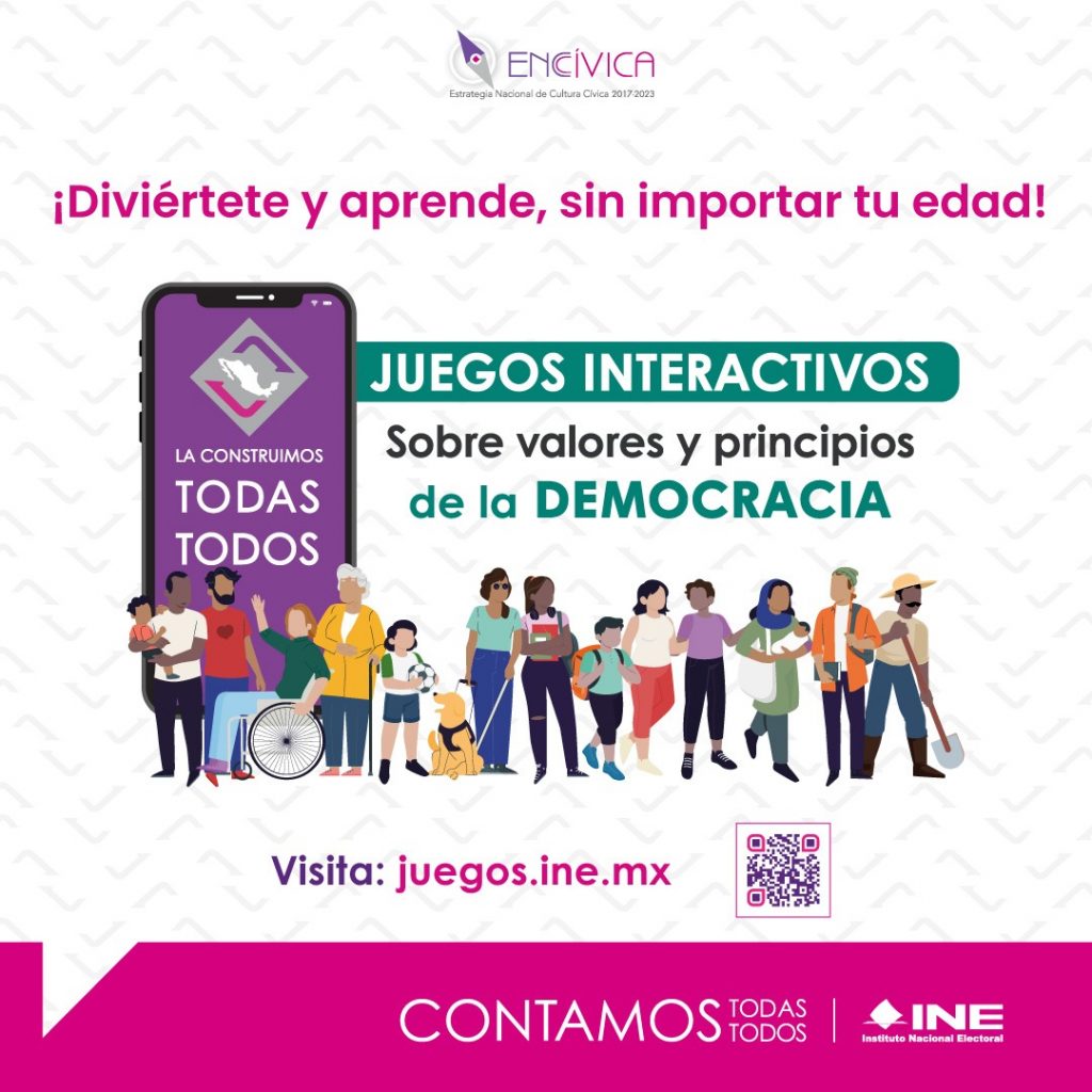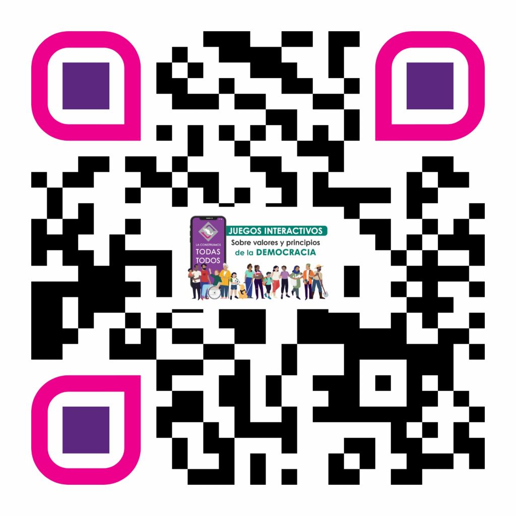 Te compartimos el link de acceso para poder disfrutar de juegos interactivos donde conocerás los valores democráticos y su significado: https://juegos.ine.mx o puedes escanear el código QR y comenzar a disfrutar.