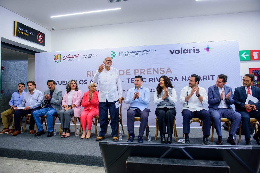 «Nayarit pronto se verá surcado en el cielo, surcado por aerolíneas, particularmente Volaris, que ha brindado su confianza, porque nuestro destino turístico debe de ser el destino del mundo, no solamente de la demanda nacional y regional», informó el mandatario estatal durante su intervención.