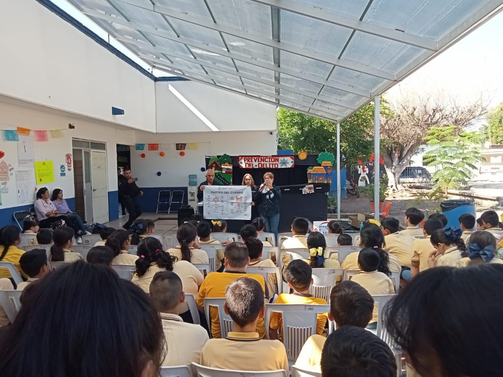 Realizando la “Feria de Prevención del Delito”, en la cual el personal especializado presentó una serie de actividades con mensajes de prevención para niñas y niños, incluyendo el rescate de juegos tradicionales, valores, fomento a la lectura y teatro guiñol.