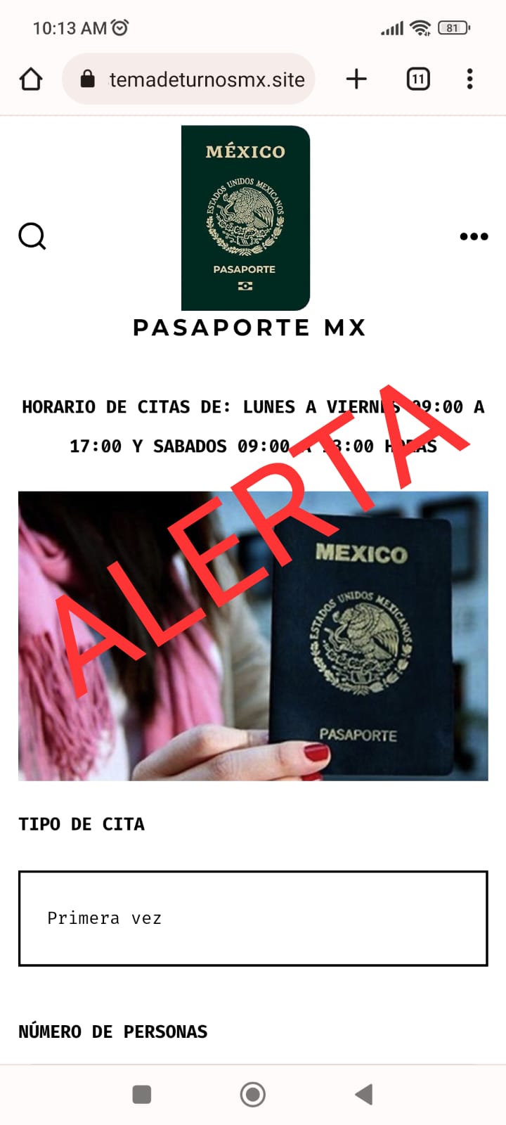 El personal de la Unidad de Cibernética durante los trabajos ha identificado diferentes sitios web apócrifos, los cuales solicitan un pago previo para acceder al servicio de citas: pasaporteycitasregob.com.mx y pasaporteenlinea.com