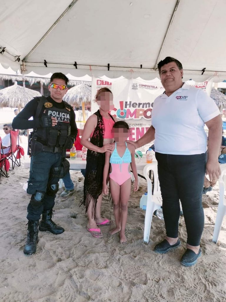 De manera oportunidad y gracias a los recorridos de vigilancia y prevención del delito, que realizan los elementos la Policía Estatal Turística por pie tierra, fueron entregados a tres menores de edad perdidos a orillas de la playa, dos menores de 7 años y otra de 8 años, brindandoles inmediatamente la atención necesaria y siendo trasladados a uno de los Módulos de atención, para luego localizar exitosamente a los padres de los menores.