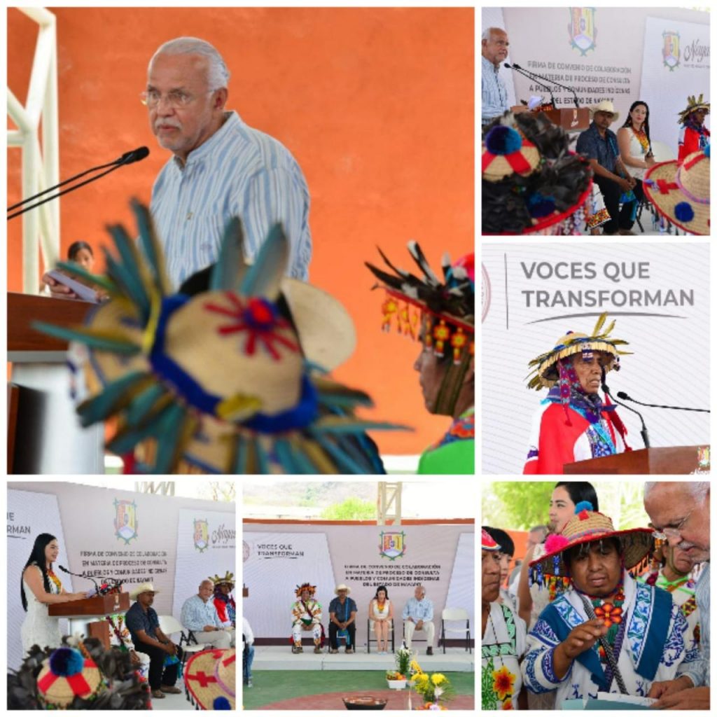 EL gobernador del estado, Miguel Ángel Navarro Quintero, encabezó la Firma de Convenio de Colaboración en Materia de Proceso de Consulta a Pueblos y Comunidades Indígenas del Estado de Nayarit, acto que se desarrolló en la localidad de Salvador Allende municipio de Tepic y que contó con la presencia de diputadas y diputados locales, además de funcionarios estatales.