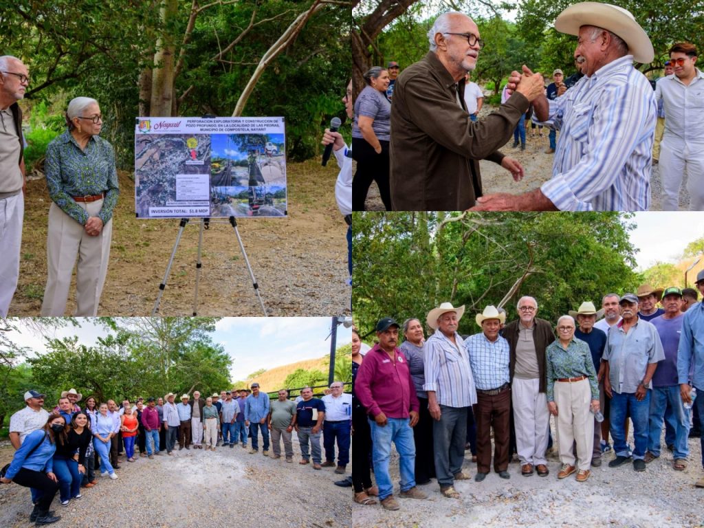 El gobernador del estado, Miguel Ángel Navarro Quintero, acompañado de su esposa, la presidenta del Sistema DIF Nayarit, doctora Beatriz Estrada Martínez, supervisó los trabajos de perforación exploratoria y la construcción de un pozo profundo en la localidad de Las Piedras, municipio de Compostela.