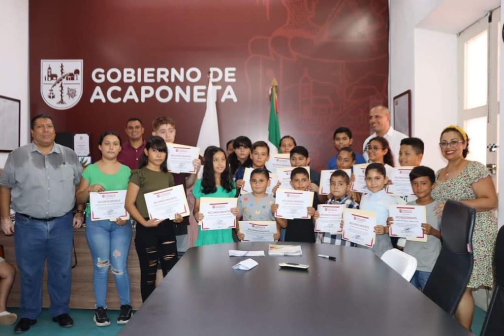 El presidente municipal de Acaponeta, Manuel Ramón Salcedo Osuna, entregó los merecidos reconocimientos a los niños y jóvenes que resultaron ganadores del concurso Mi cuento cuenta mucho y Poemas de Nezahualcóyotl.
