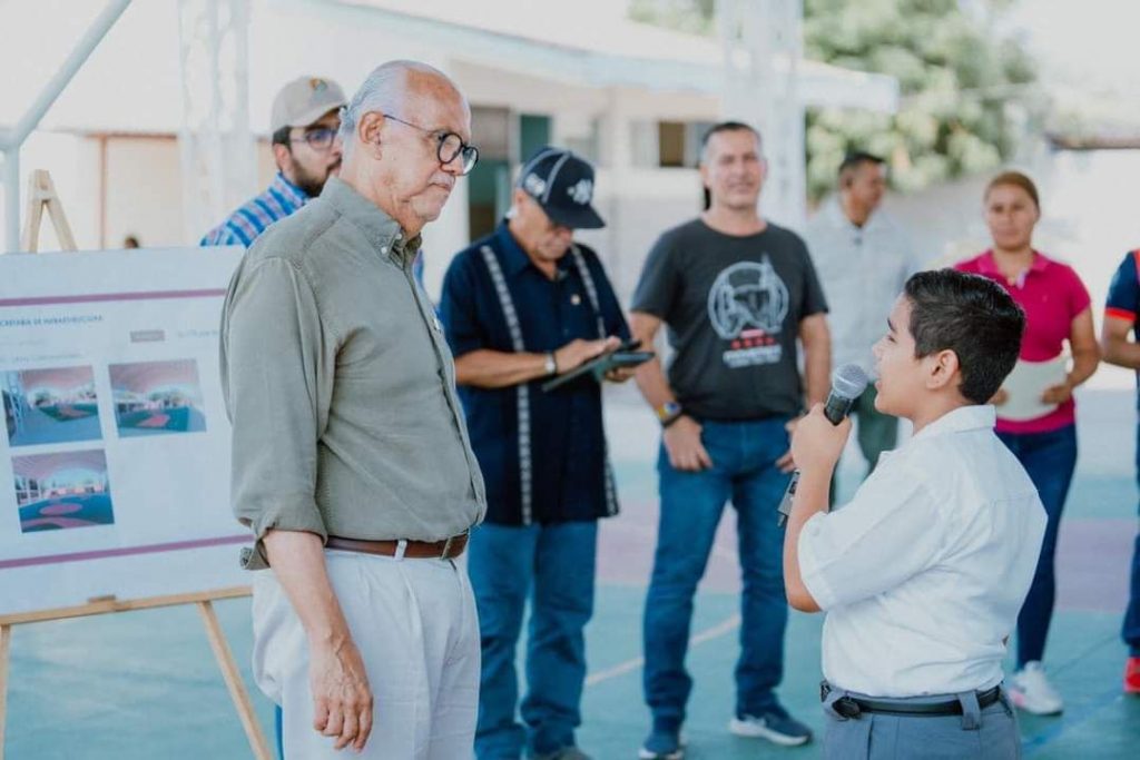 Posteriormente y durante su gira de trabajo, en la primaria Jaime Torres Bodet, de la comunidad de La Presa, municipio de Santiago Ixcuintla, entregaron a las y los alumnos, docentes y padres de familia, material deportivo y las renovadas instalaciones. «Una educación que forme para el bienestar y el progreso, solamente será posible en condiciones dignas. En Nayarit, nos estamos poniendo a la altura del futuro que queremos», puntualizó.