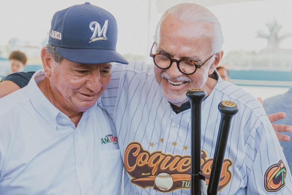 “El día de hoy, yo vengo a reivindicar un compromiso que hice en aquella esquina una tarde con unos jóvenes, en el cual me demandaron que mejorara su estadio. El estadio para los que han vivido tan de cerca como Chuy, como Germán y como muchos más el béisbol, profesional o amateur, pues un estadio de béisbol lo representa todo, él lo representa todo, porque va uno envejeciendo, pero el ánimo en lugar de envejecer crece mucho, sí, crece mucho, y yo tenía que hacer eco, lo pude hacer en Compostela, lo pude hacer en Acaponeta, hoy lo hago con el presidente municipal en funciones de Tuxpan, y seguramente habremos de ir viendo, secretaria le pediría, los estadios que pudiéramos nosotros apoyar y que están participando en la Liga de Béisbol que lleva el nombre de “Germán Jiménez Camarena” que también, al igual que Chuy, fueron beisbolistas profesionales y que cumplieron cabalmente con el propósito que les encomendó la sociedad y que se encomendó también ellos en su deseo de brillar en una liga de béisbol, de Liga del Pacífico, o bien en las ligas estadounidenses, en la liga mayores de béisbol, que mucho nos enorgullece que estén aquí presentes”, reiteró el mandatario nayarita.