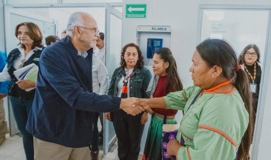 El gobernador del estado de Nayarit, Miguel Ángel Navarro Quintero, acompañado del secretario de Salud, David Kershenobich Stalnikowitz y del director general del IMSS-Bienestar OPD, Alejandro Svarch Pérez, junto a su esposa, presidenta del Sistema DIF Nayarit, doctora Beatriz Estrada Martínez, visitó el Hospital Mixto de Jesús María, en el municipio Del Nayar.