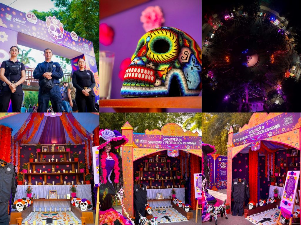 El desfile de catrinas y catrines, con la participación de instituciones gubernamentales, educativas y de la Secretaría de Seguridad y Protección Ciudadana, a través de la Dirección General de Prevención y Reinserción Social, rindió homenaje a los fieles difuntos con creatividad y respeto, culminando con la exposición de altares dedicados a mujeres nayaritas y mexicanas destacadas.