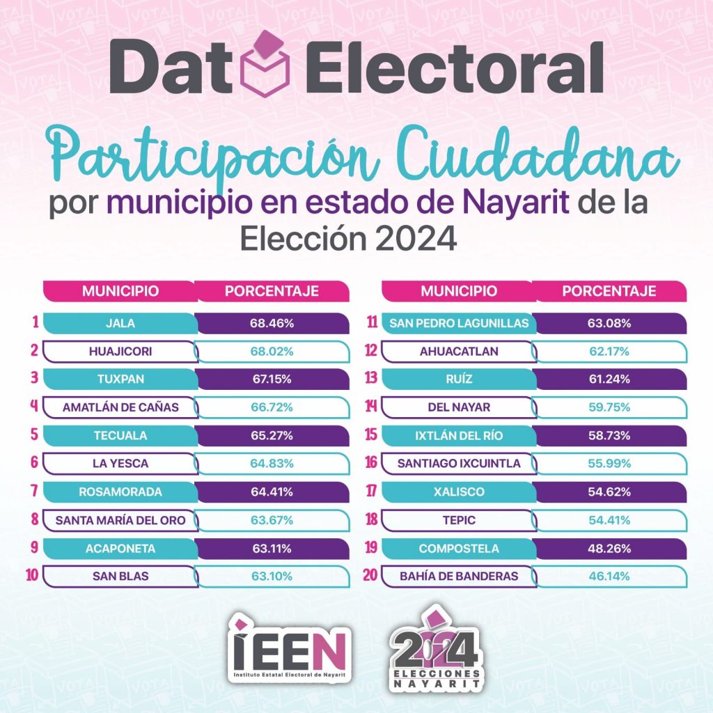 la menor participación se reflejó en los municipios de Bahía de Banderas, Compostela y