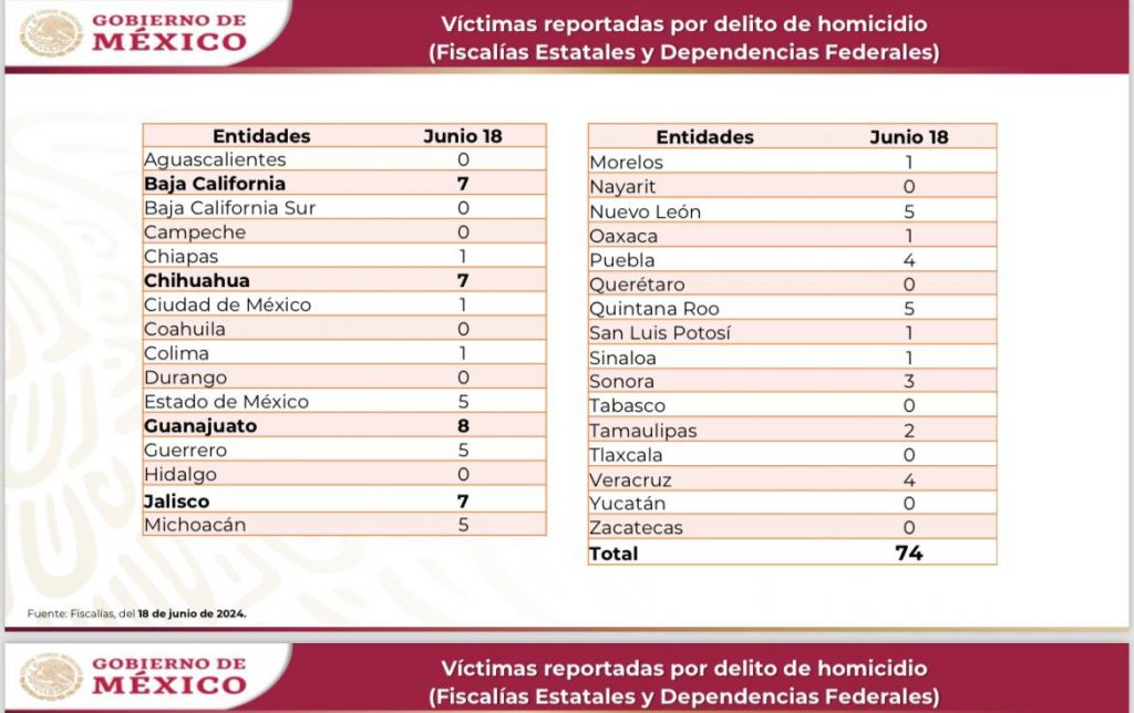 El 18 de junio, Nayarit alcanzó un importante logro en materia de seguridad al no reportar víctimas por delito de homicidio, de acuerdo a los datos proporcionados por las Fiscalías Estatales y Dependencias Federales.