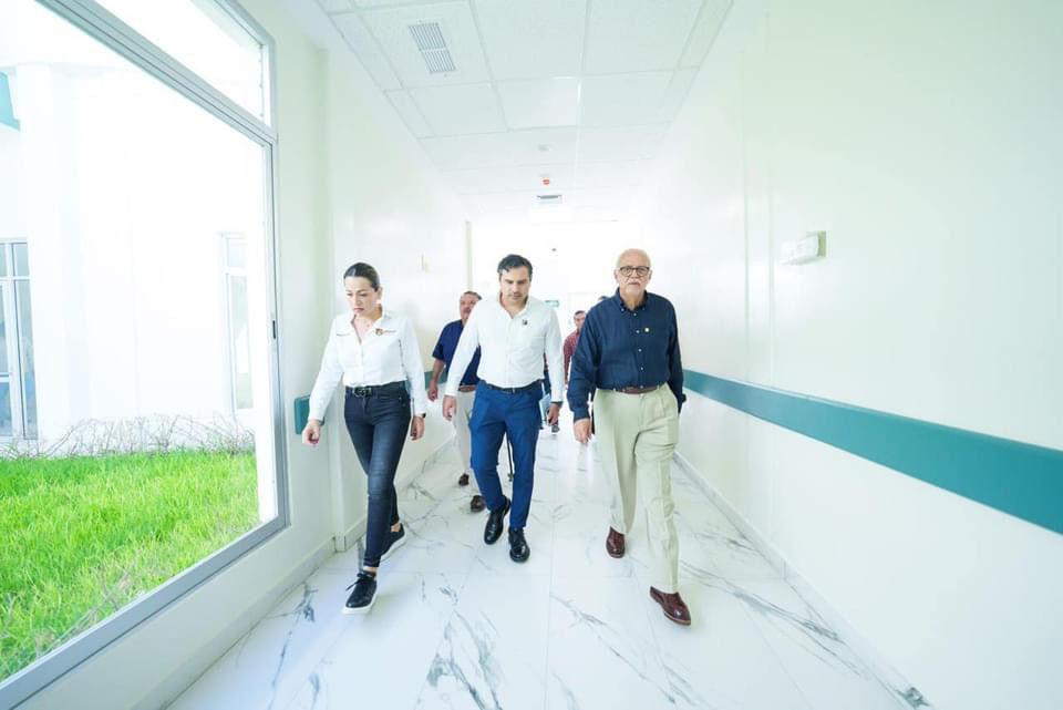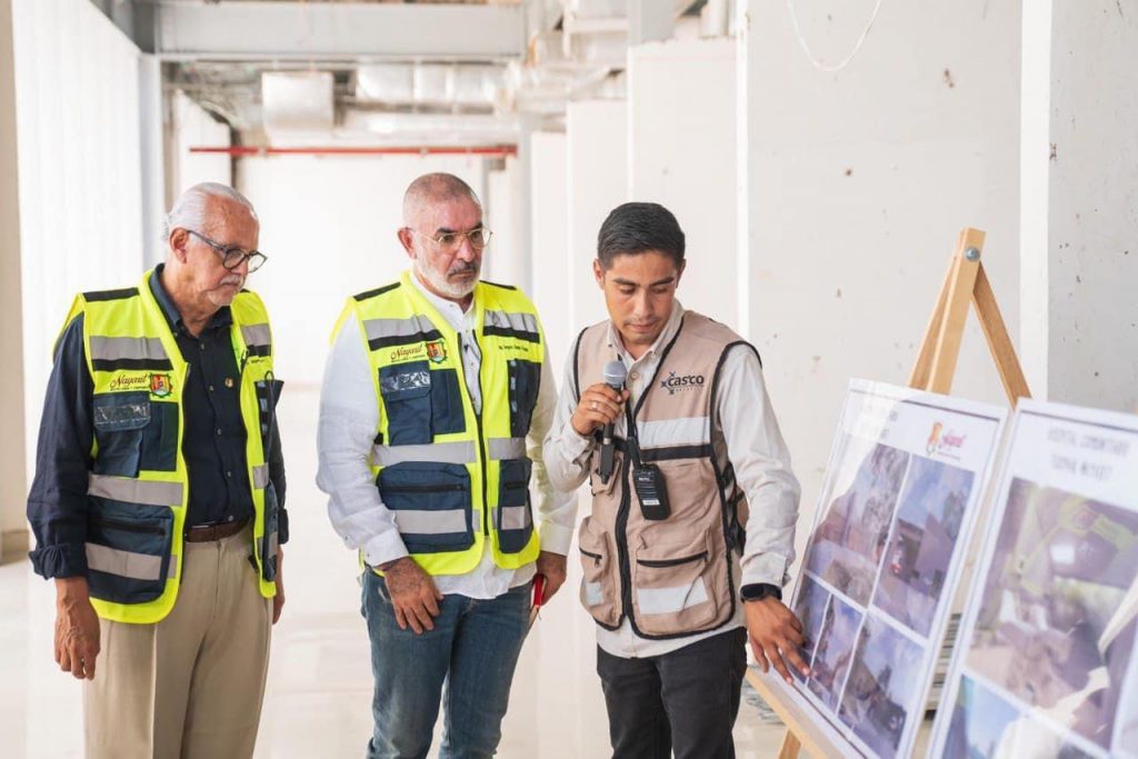 El gobernador del estado, Miguel Ángel Navarro Quintero durante la visita del Dr. Alejandro Calderón Alipi, titular de IMSS-Bienestar, y de su equipo de trabajo, supervisaron el sitio de construcción del nuevo Hospital General de 120 camas, también visitaron los Hospitales de la Mujer y de Tuxpan, ya próximos a entregarse.