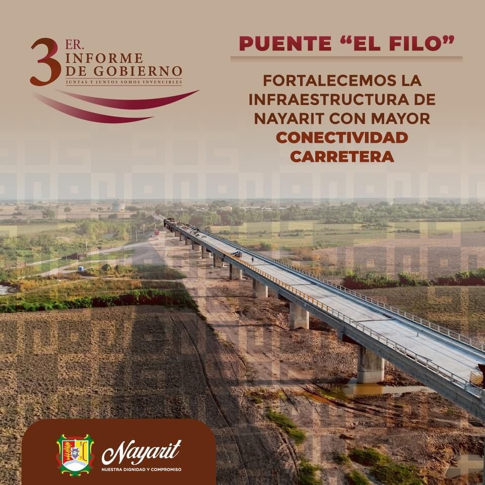 Hoy, a las y los habitantes de El Filo municipio de Tecuala, ya no les preocuparán las crecientes del río, porque tienen un nuevo puente, con pilares firmes que les permitirá seguir conectados vía terrestre con cualquier otra localidad.