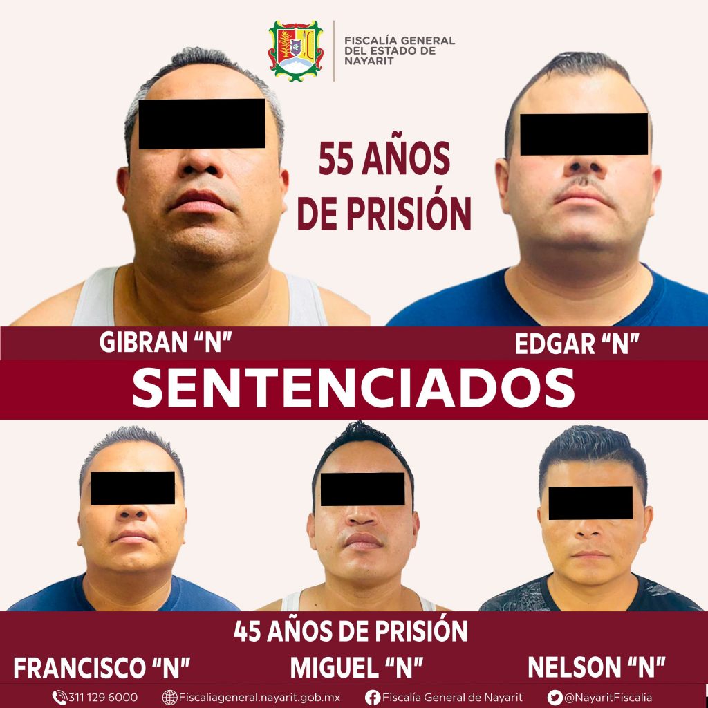La Fiscalía General del Estado a través de la Fiscalía Especializada en Investigación de Personas Desaparecidas, obtuvo dentro de la Causa Penal 1233/2020 una sentencia condenatoria mediante juicio oral por los delitos de desaparición forzada de personas y delitos cometidos por servidores públicos en contra de cinco personas, quienes al momento de los hechos se desempeñaban como elementos de Seguridad Pública del municipio de Compostela, Nayarit.