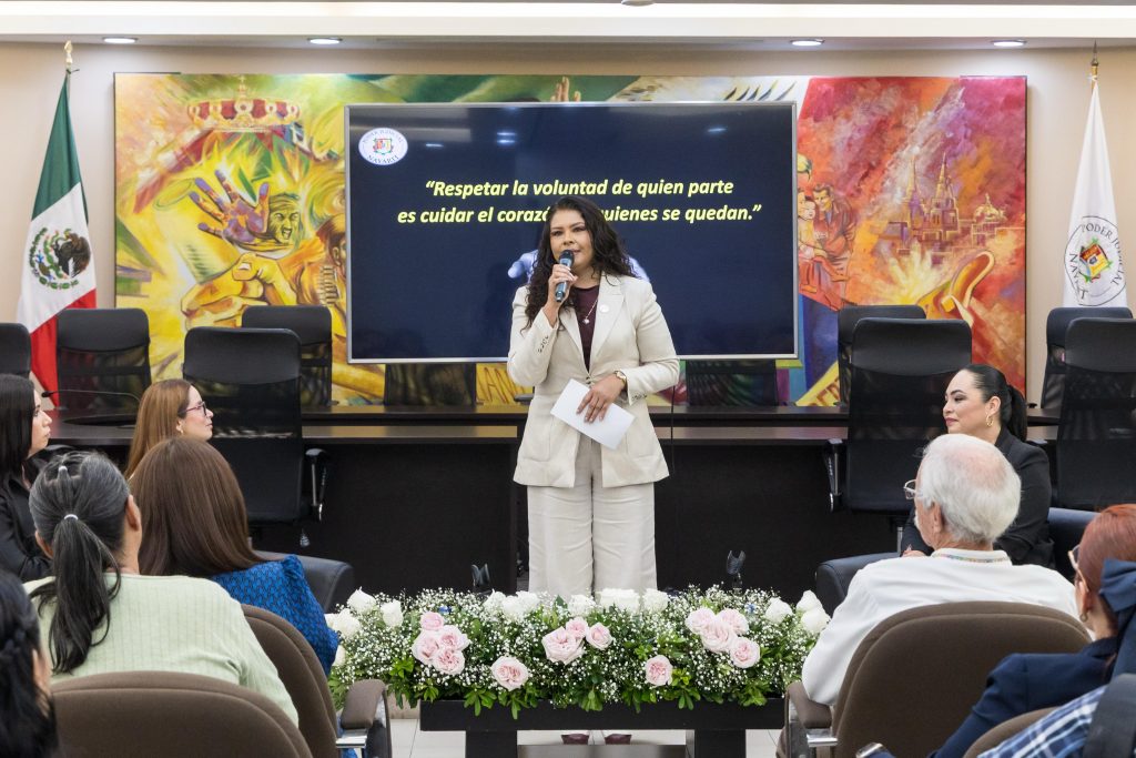 Durante su participación, la presidenta del Tribunal Superior de Justicia y del Consejo de la Judicatura, Aracely Avalos Lemus, señaló que estos espacios de reflexión y análisis fortalecen el acceso a la justicia en el Juzgado Especializado en Sucesiones, al permitir identificar procesos que favorecen una atención ágil, oportuna e integral, enmarcada en los principios de la Justicia Restaurativa.