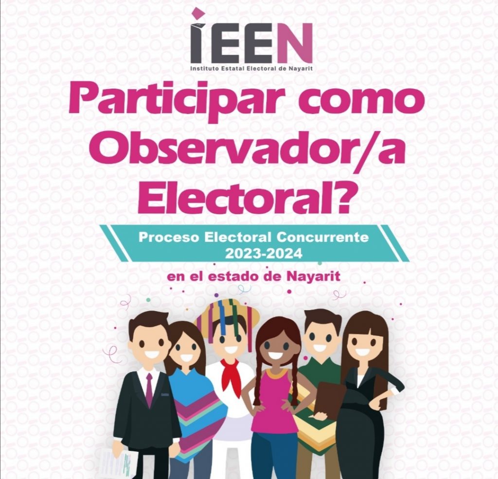 El Instituto Estatal Electoral de Nayarit y el Instituto Nacional Electoral INE mediante su Junta Local Ejecutiva, invitan a la ciudadanía a participar como Observadora u Observador Electoral, el observador/a Es la persona facultada por Ley para observar los actos de preparación y desarrollo del Proceso Electoral, así como los actos de la Jornada Electoral.