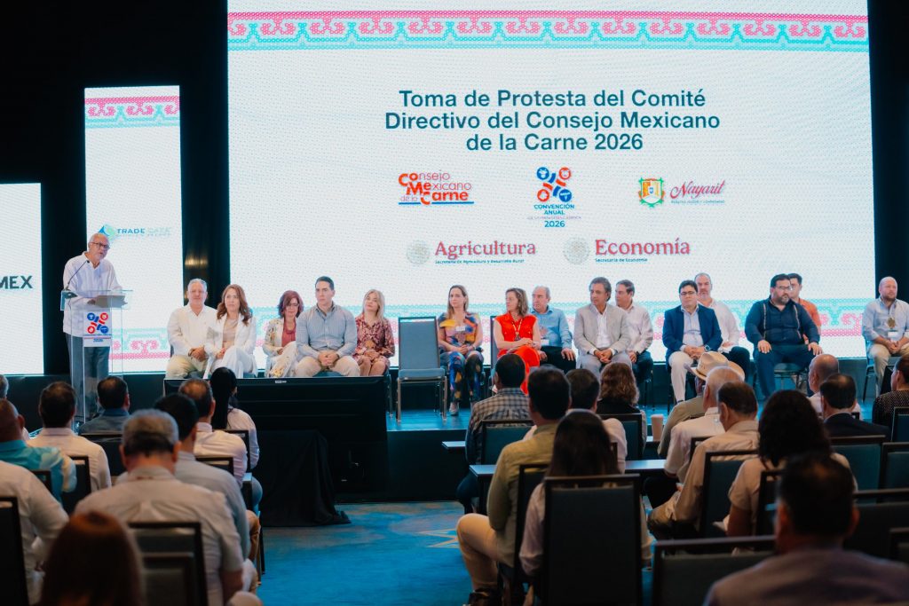 Este jueves, el gobernador del estado, Miguel Ángel Navarro Quintero, participó en la Convención Anual de la Industria Cárnica 2026, en Bahía de Banderas, donde tomó protesta al nuevo comité directivo del Consejo Mexicano de la Carne (COMECARNE).