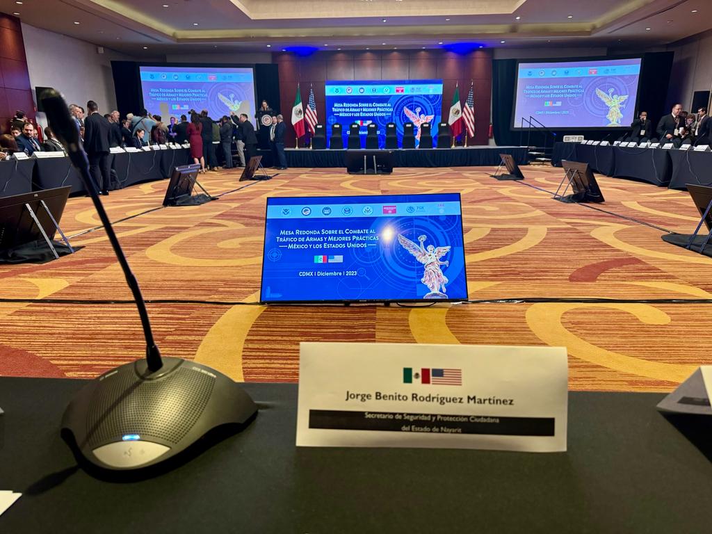 Con una actividad que se desarrollará durante los días 4 y 5 diciembre, en la CDMX, y será liderada por autoridades de la Embajada de Los Estados Unidos en México, en el marco del Entendimiento Bicentenario, el titular de la Secretaría de Seguridad y Protección Ciudadana de Nayarit, Jorge Benito Rodríguez Martínez, participa en la “Mesa Redonda: Retos y Mejores Prácticas en el Combate al Tráfico de Armas entre México y los Estados Unidos”.