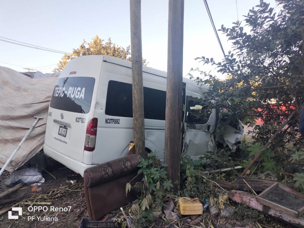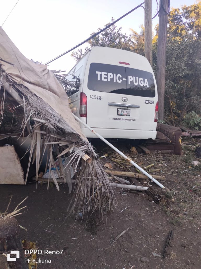 En el lugar se encontró una combi de la marca Toyota, perteneciente al transporte público, con la ruta de Tepic – Puga, misma que fuera embestida por el tren en movimiento, siendo desplazada por un trayecto aproximado de díez (10) metros.