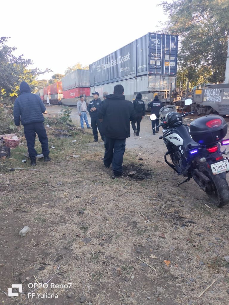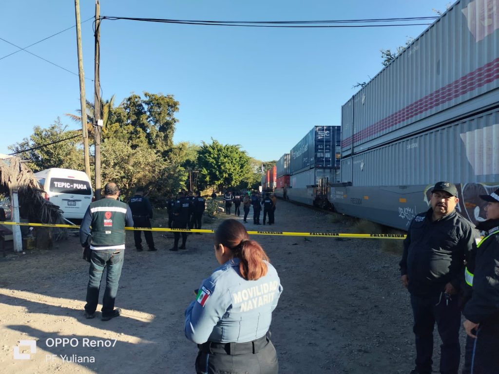 La Secretaría de Seguridad y Protección Ciudadana atiende el reporte de un hecho de tránsito entre una combi y el tren en la localidad de Francisco I. Madero Puga, del municipio de Tepic.