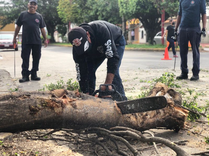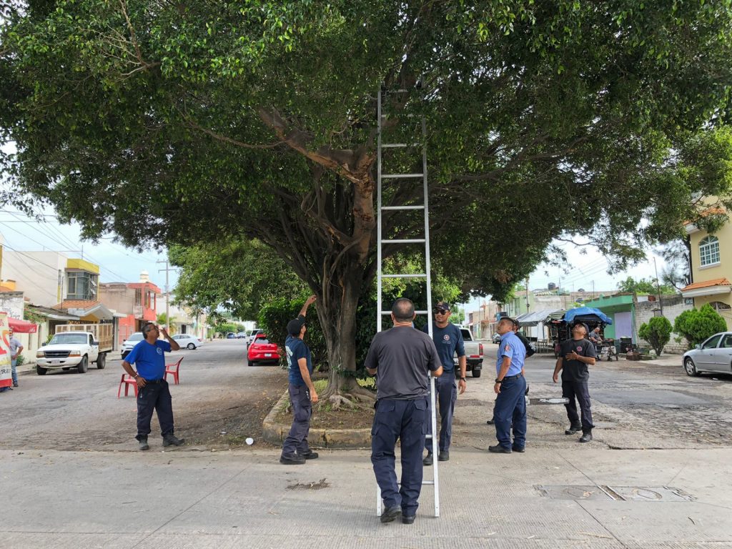 Elementos de Protección Ciudadana y Bomberos, toman conocimiento del hecho y se dirigen al lugar donde se encontraba un árbol con unas ramas echadas a perder, al inspeccionarlo se observó que no era necesario cortar el árbol completo, solo el sobre peso de el.