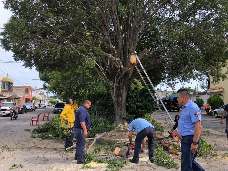 En atención a un reporte recibido a la línea de emergencias 9-1-1, donde se mencionara un árbol con riesgo de caer en el fraccionamiento Las Aves de Tepic.