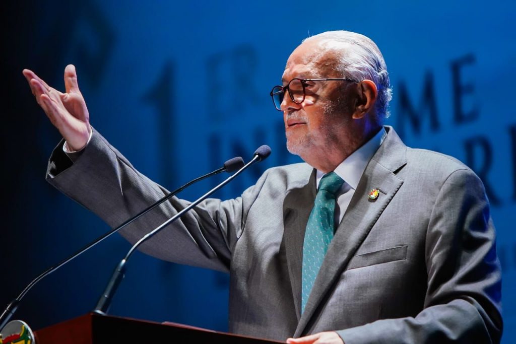 Ante miles de personas en el Teatro del Pueblo,»Alí Chumacero», el gobernador de Nayarit Miguel Ángel Navarro Quintero rindió su Primer Informe de labores, acompañado de su esposa, la doctora Beatriz Estrada Martínez, de sus hijos y nietos, así como de miles de mujeres y hombres que respaldaron los 12 primeros meses de administración gubernamental, donde se han logrado realizar más de 300 obras públicas con recursos propios, cambiar el modelo en Salud, construir nuevas aulas, avanzar en la mejora de caminos, poner un freno a la sobreexplotación de recursos naturales y seguir en un camino de posicionar a Nayarit como un estado modelo.