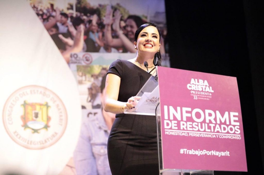 La diputada Alba Cristal Espinoza Peña remarcó: “trabajo por un mejor Nayarit; uno que privilegie siempre los derechos sociales; un Nayarit donde nuestras mujeres, niñas y niños sean protegidos; donde se estimule el desarrollo de nuestra juventud; se escuche la voz de todas y todos”.