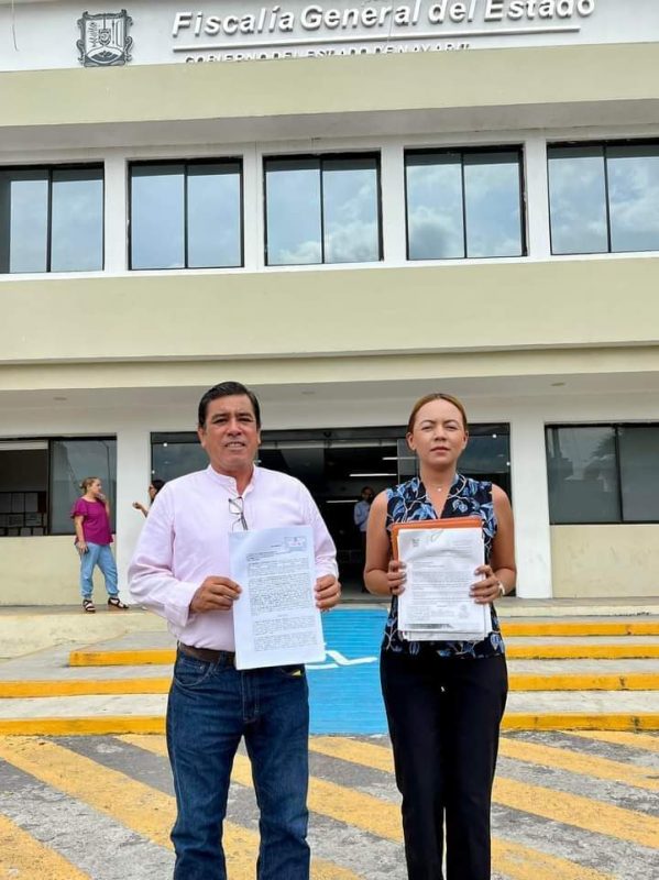 El alcalde de Santiago, Ixcuintla; profesor Eduardo Lugo López y la Síndico Municipal Marisol Contreras, el día de hoy asistieron a las instalaciones de la Fiscalía General del Estado de Nayarit, para interponer un par de denuncias en contra de las autoridades del gobierno anterior que presidieron al municipio santiaguense.