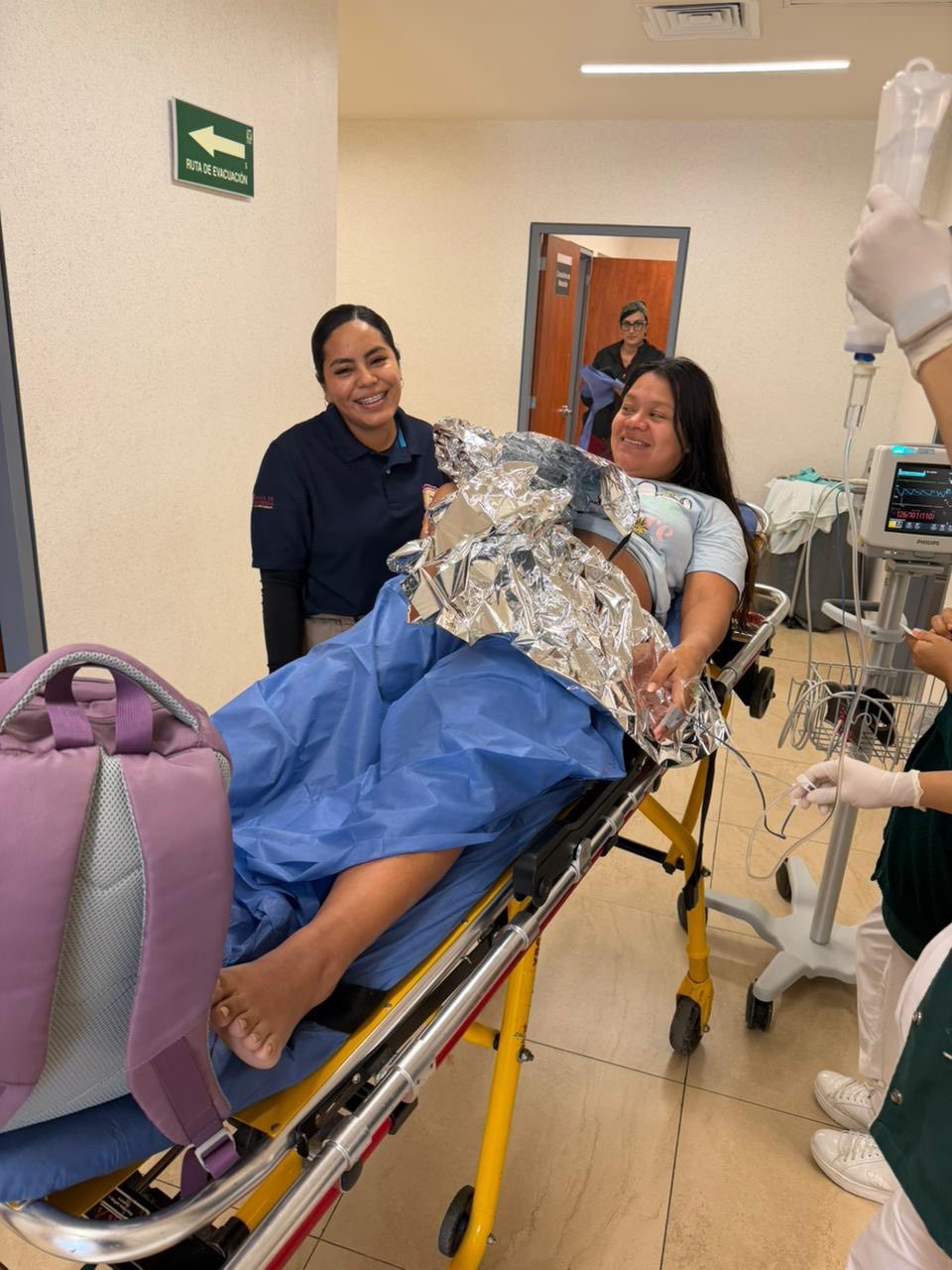 El recién nacido fue envuelto con manta térmica y la madre recibió atención intravenosa para estabilizarla.