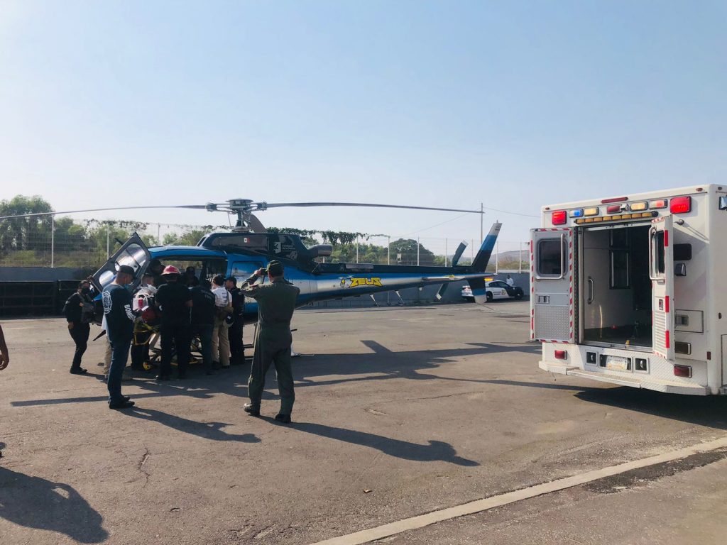 En los trabajos participa el Sector Salud encabezado por su titular, Francisco Munguía, la Secretaría de Seguridad y Protección Ciudadana de Nayarit a través de la Unidad Médica Táctica de la Policía Estatal, Bomberos de Nayarit y el Sistema de Atención Médica de Urgencias de Jalisco con un segundo traslado de un paciente, desde las inmediaciones del Auditorio Amado Nervo con destino a Zapopan, Jalisco, en el angar de la Comisaría de Policía.