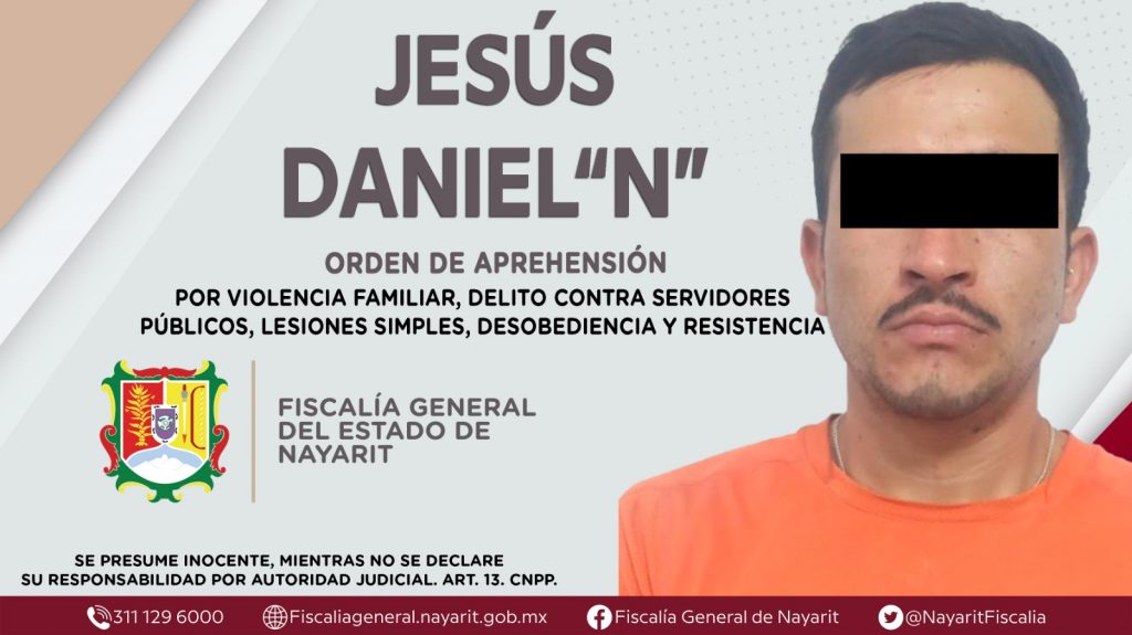 La Fiscalía General del Estado a través de la Agencia de Investigación Criminal dio cumplimiento a una orden de reaprehensión en la ciudad de Tepic contra Jesús Daniel “N”, por su presunta participación en hechos que según apreciación de la ley encuadran los delitos de violencia familiar, lesiones simples y delito cometido contra servidores públicos, así como desobediencia y resistencia de particulares.