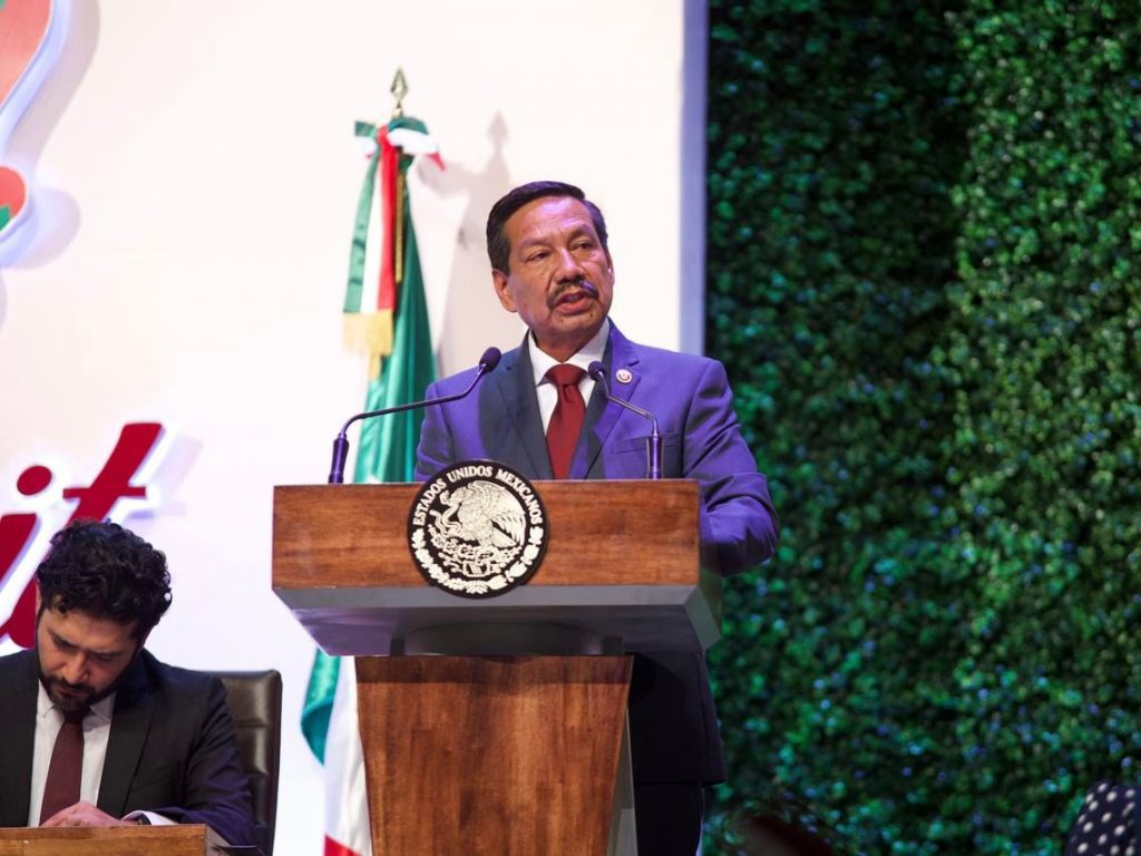 En su oportunidad, el Secretario del Trabajo y Previsión Social, maestro Marath Baruch Bolaños López, representante personal de la doctora Claudia Sheinbaum Pardo, Presidenta Constitucional de los Estados Unidos Mexicanos, expresó su reconocimiento a los logros del gobierno de Nayarit; se refirió al nivel de confianza de las y los policías, el avance en implementar el IMSS Bienestar, los logros de obra pública, en la cultura, en tecnologías de la información en el servicio público, en materia laboral, así como en el empleo.
