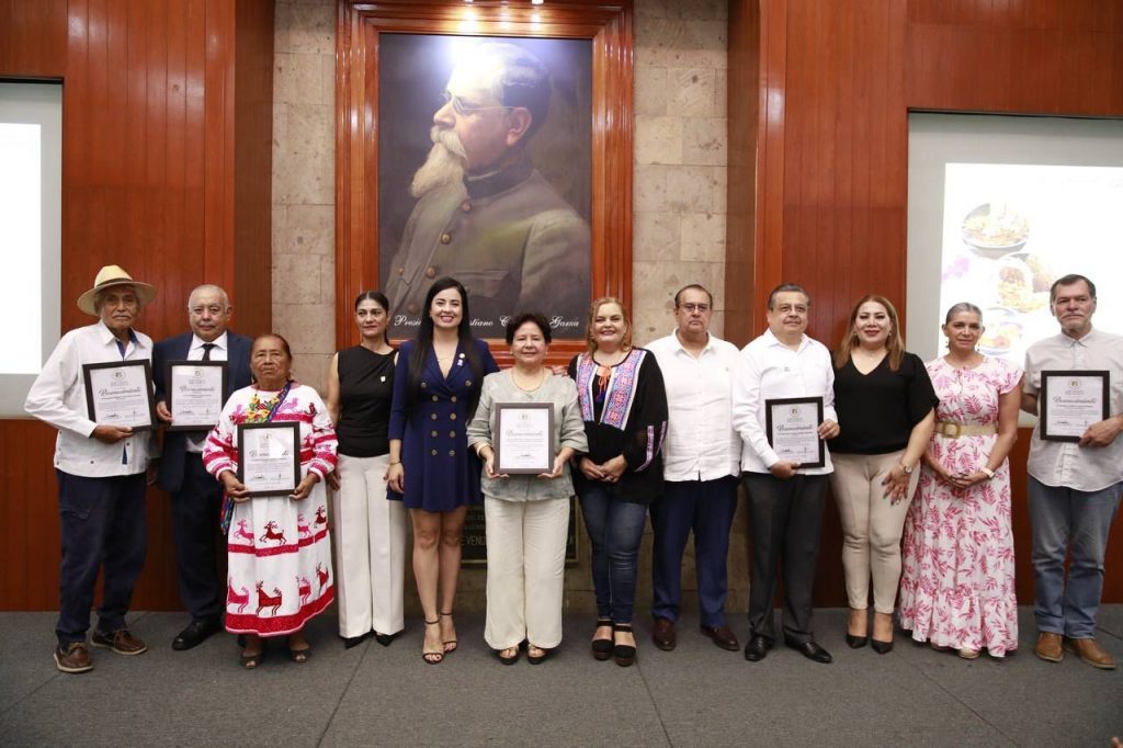 En el marco de la celebración del Día de la Gastronomía Nayarita y durante el festival Nayarit está en su Punto, la presidenta del Congreso del Estado, diputada Alba Cristal Espinoza Peña, hizo entrega de reconocimientos a distinguidos nayaritas por su gran talento en el arte culinario, la historia, ciencia y docencia.