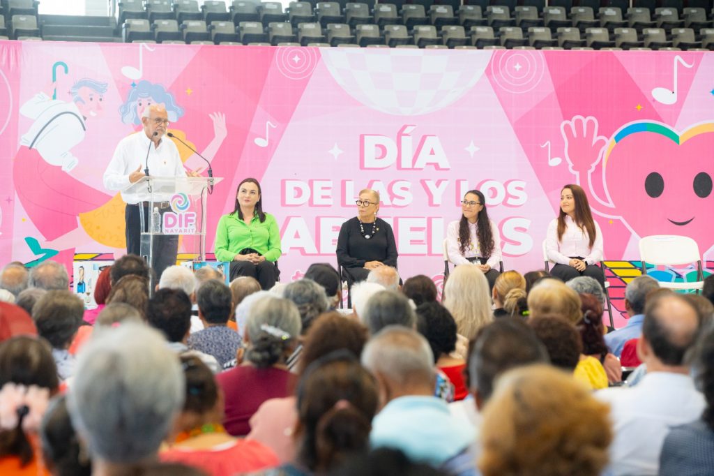 Con gran entusiasmo, más de 800 personas adultas mayores se reunieron para celebrar el Día de las Abuelas y los Abuelos, en un evento encabezado por la doctora Beatriz Estrada Martínez, presidenta del Sistema DIF Nayarit, acompañada de su esposo, el gobernador del estado Miguel Ángel Navarro Quintero.