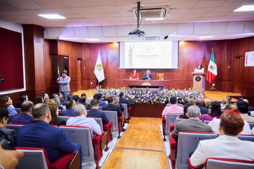 Finalmente, Haro Cruz destacó que el Poder Judicial desarrolla su labor jurisdiccional mediante el Tribunal Superior de Justicia, los Juzgados de Primera Instancia, los Centros Regionales de Justicia Penal, los Tribunales Laborales, así como los Centros de Justicia Alternativa y de Convivencia Familiar. Y de las acciones derivadas de las estrategias, en poco más de diez meses realizaron el 43 por ciento, lo cual los motiva a seguir avanzando en esa ruta que va más allá de un ejercicio anual.