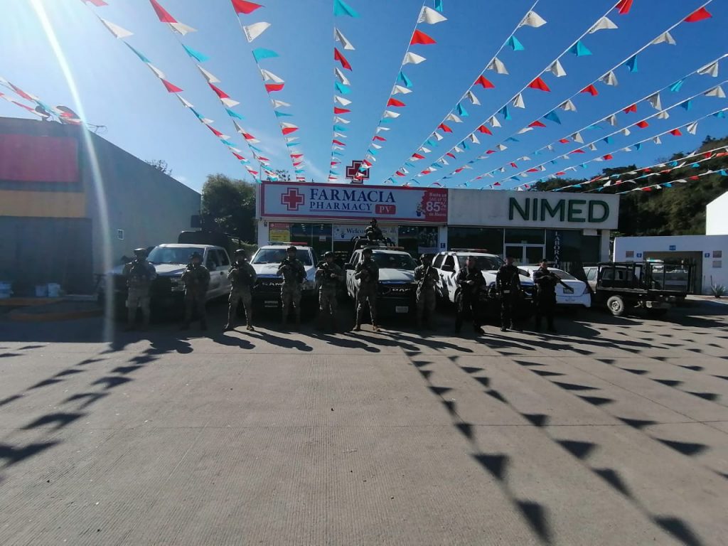 En estrecha coordinación con las fuerzas Federales, se refuerzan los accesos viales, calles y áreas de Sayulita, Higuera Blanca, Punta de Mita, Cruz de Huanacaxtle y tramos carreteros de estas localidades.
