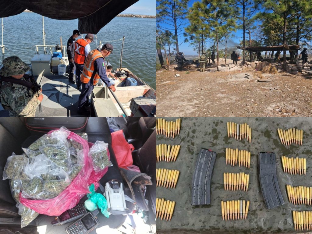 Durante la reunión se informó el aseguramiento de armamento, cartuchos, artefactos improvisados, equipo táctico y vehículos en distintos municipios, así como la localización y desmantelamiento de puntos de observación y campamentos de grupos delictivos.