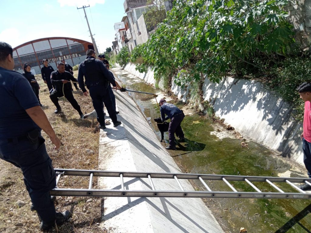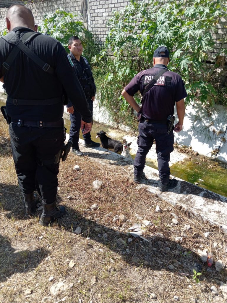El Gobierno del Estado de Nayarit a través de la Secretaría de Seguridad y Protección Ciudadana realiza el rescate de dos caninos que se encontraran al interior de un canal de desagüe pluvial ubicado en la colonia 26 de septiembre de Tepic.