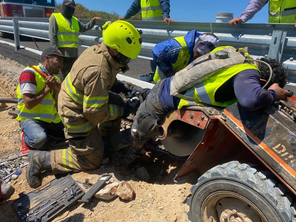 Los hechos comenzaron tras recibir el reporte a la línea de emergencias 9-1-1, donde se mencionara a un masculino atorado en una máquina de construcción sobre el kilómetro 107+200.