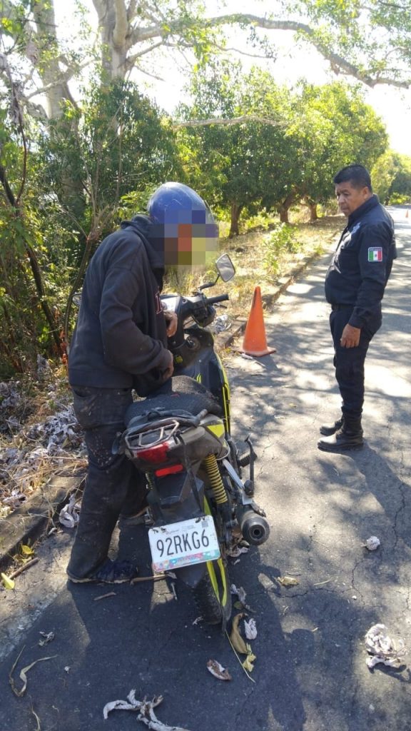 Los elementos descendieron del vehículo Carro Radio Patrulla para verificar la información, teniendo a la vista una motocicleta Italika en color negro con amarillo y a un masculino, a la brevedad los elementos llevaron a cabo las maniobras para extraer a la persona y la motocicleta.