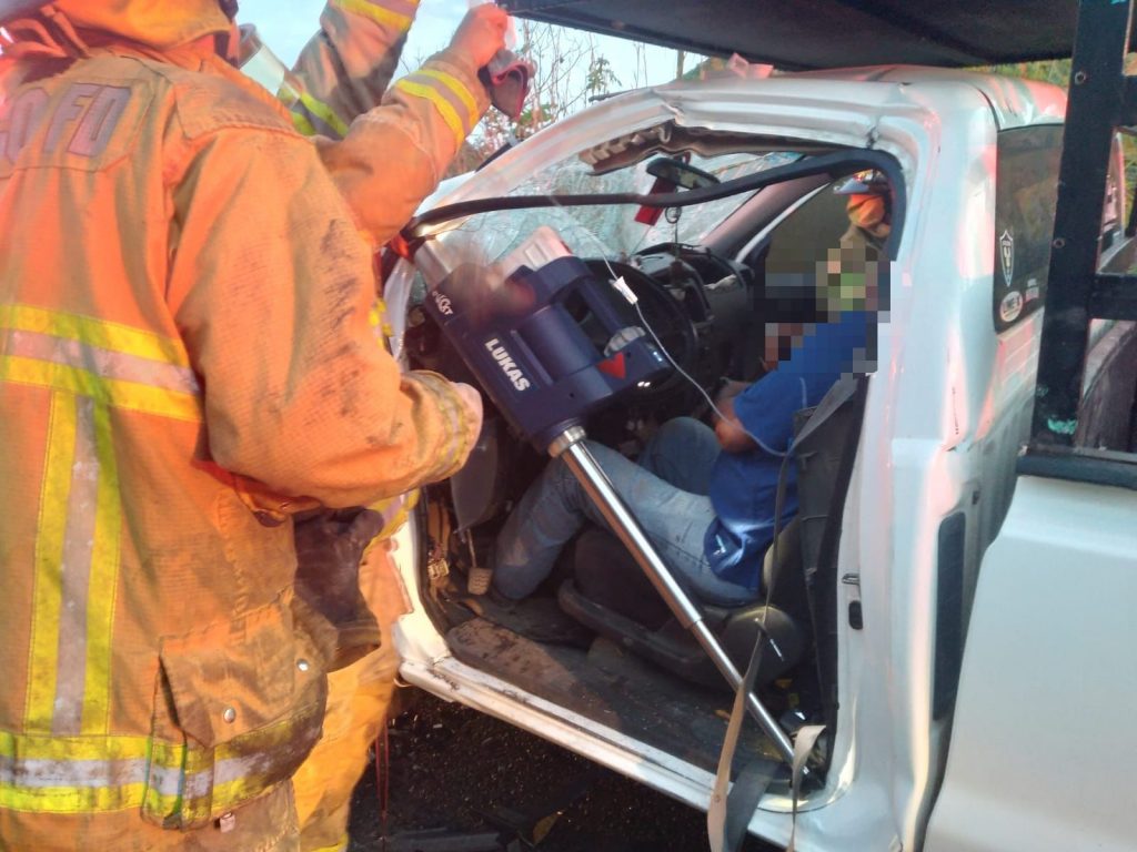 Rápidamente, los bomberos mediante el uso de la herramienta hidráulica conocida como “quijadas de la vida” procedieron a expandir el vehículo para desatorar al masculino y cortar la puerta del auto para lograr extraerlo, siendo atendido en el lugar por la Unidad Médica Táctica de la Policía Estatal para posteriormente ser trasladado a urgencias médicas.