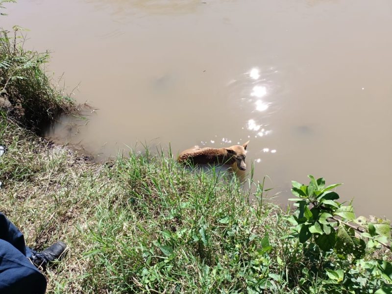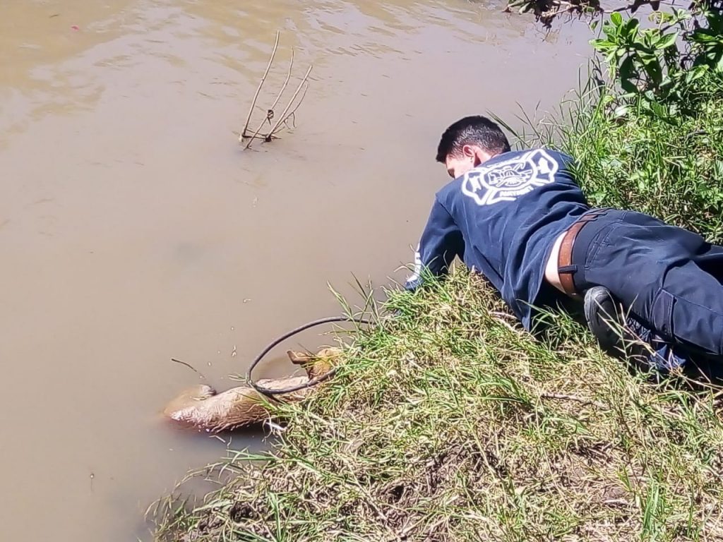 Personal de Protección Ciudadana y Bomberos, se informa del hecho y se dirigen rápidamente a las inmediaciones del río, donde se encontró a un canino dentro del cauce y cerca de la orilla, a la brevedad los elementos bomberiles se aproximaron al canino para lograr extraerlo del río y ponerlo a salvo.